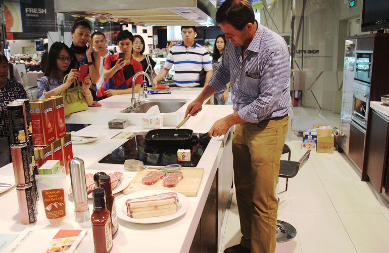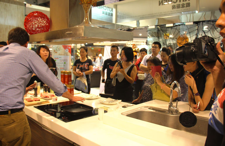 格芬牧場(chǎng)的牧場(chǎng)主格雷姆親臨主廚,宣講牛排煎制方法及格芬牧場(chǎng)現(xiàn)狀: