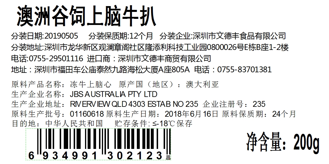 從澳洲正關(guān)進(jìn)口的牛肉都有明顯的中文標(biāo)識,包括品名、規(guī)格、原產(chǎn)國、生產(chǎn)批號、生產(chǎn)日期、保質(zhì)期、儲存溫度、生產(chǎn)企業(yè)注冊號和目的地(應(yīng)注明為“中華人民共和國”)等內(nèi)容。